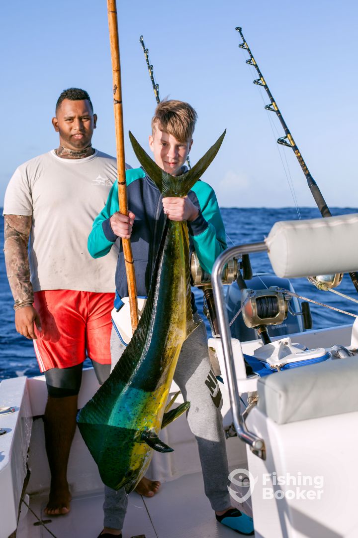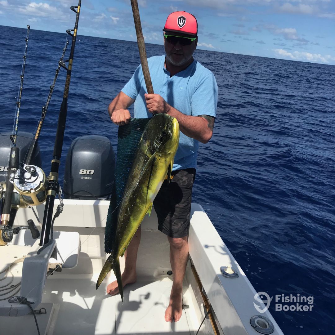 We had to change the pre-booked fishing trip day due to a strong wind and rough sea. We went out for the half day fishing in the morning 3 days later. Kevin suggested to start earlier and we are happy that we did, as we caught all our fish during the first 2 hours. The boat is great and the crew is very helpful. Catching the fish was awesome and we caught 3 Dorado and 3 Tuna - not big catch, but we were happy anyway. Even though, about 70% of the trip was just bouncing along in the boat, we still... More