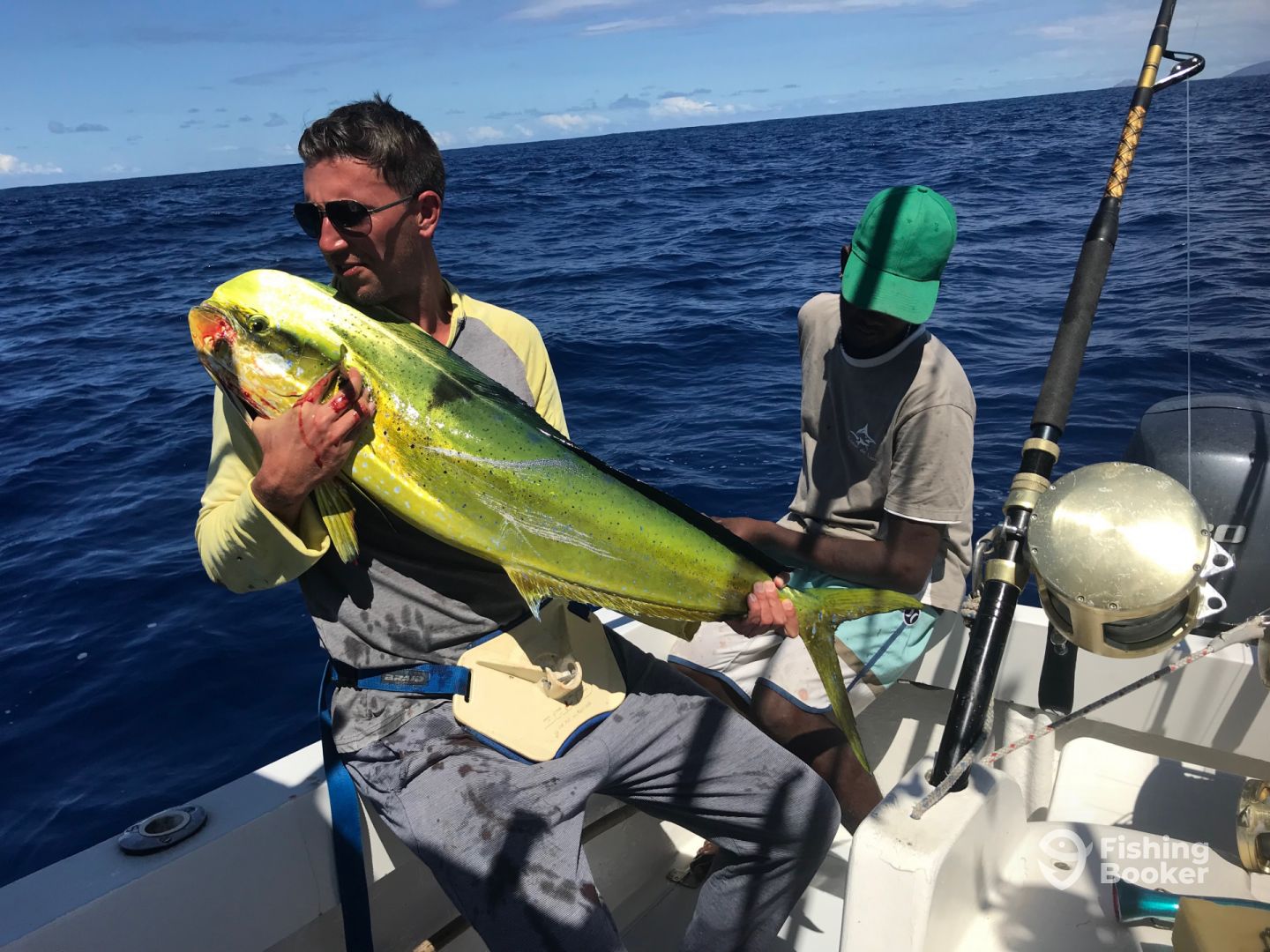 Boat is awesome and spacious, Gear is fantastic although I would have preferred fighting the smaller Yellow Fin on lighter tackle. The gear and boat is extremely well maintained and clean.