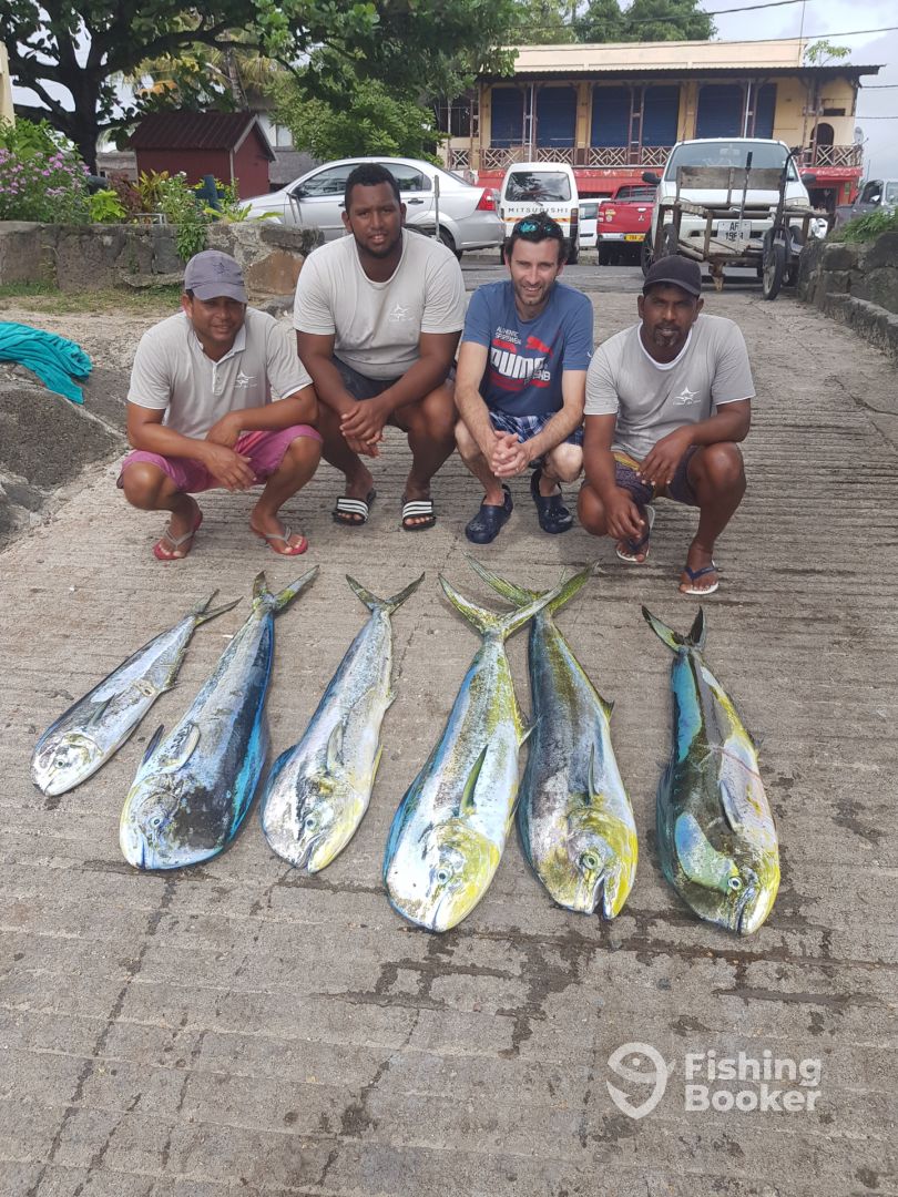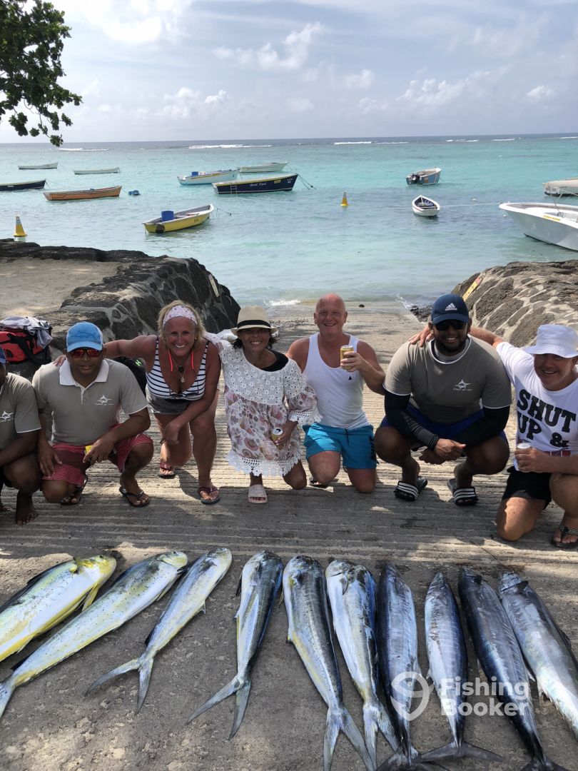 I can honestly say that we had the best fishing trip with Captain Kevin and his crew. Kevin made our trip really personal and special. He kept us up to date with the weather forecast and even changed the day we fished so we had better weather conditions. On the day Kevin and his crew were friendly and really helpful. They worked really hard to find us fish and were successful! At one point we had lines going off left right and centre! The boat itself was comfortable and handled the waters well. I really would highly recommend Captain Kevin and the Coeur De Lion to anyone considering taking a fishing trip in Mauritius. I wish we could take him with us on our next journey!!! Thanks Kevin and crew for a great day fishing. Hope to see you guys again one day.