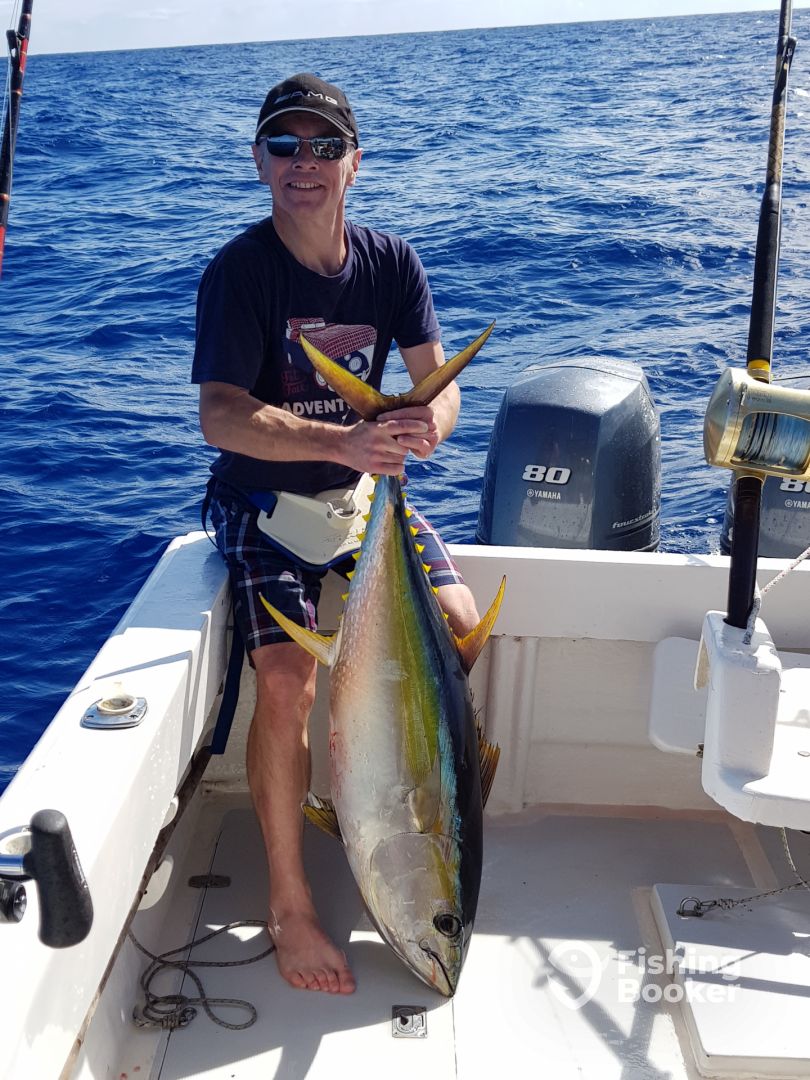 We had to change the pre-booked fishing trip day due to a strong wind and rough sea. We went out for the half day fishing in the morning 3 days later. Kevin suggested to start earlier and we are happy that we did, as we caught all our fish during the first 2 hours. The boat is great and the crew is very helpful. Catching the fish was awesome and we caught 3 Dorado and 3 Tuna - not big catch, but we were happy anyway. Even though, about 70% of the trip was just bouncing along in the boat, we still really enjoyed the trip. As we traveled with children (13, 5 and 4), Kevin had a great idea to finish our deep sea fishing earlier and go fishing on the reef, where children could enjoy the fishing and caught 2 Needlefish. I definitely recommend Coeur De Lion ;)