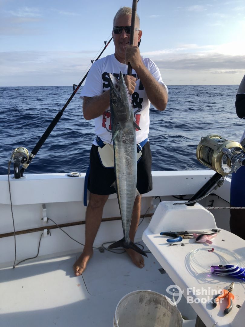 What a great days fishing with Captain Kevin and his crew. 3 very friendly and knowledgeable guys made this a fishing trip of a lifetime. He really knows his stuff and I think the pictures show that. Captain Kevin was in contact by text several days before we went out and it felt like I already knew him. The day before we left he contacted me to suggest an earlier start as he knew a fishing area that would do well but a long way from shore and it was well worth it. My sea fishing skills were rusty to say the least but the crew were patient and very helpful. Iโd go fishing with Captain Kevin again any day and if not during this holiday then hopefully next year during Marlin season. Tight lines Captain Kevin, best wishes to you and your crew and thank you for a fishing trip of a lifetime.