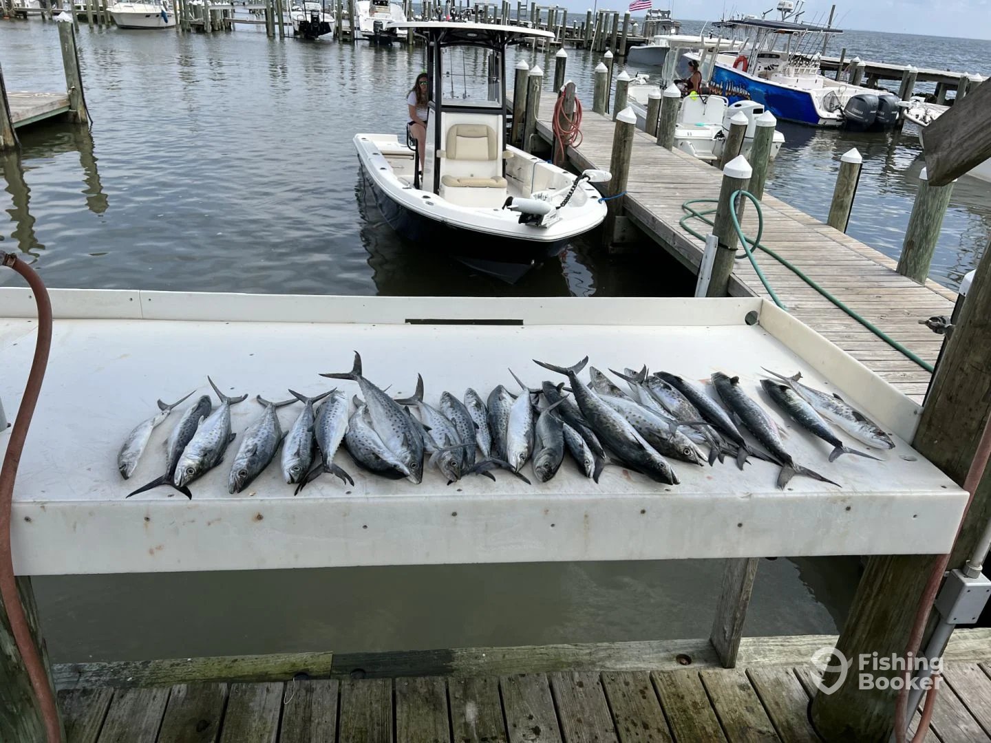 Great captain here people. His helper was on point assisting the whole trip. Spoke with captain day prior of trip and he advised water would be rough. Even with rough water they put us on fish with a variety of fish, stingray, shark, and even some big fish. Had a great time will use again on the future. Highly recommend.