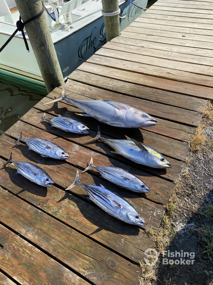 We did a full day deep sea trip with Captain Mark and his crew. Boat was nice with plenty of space inside to hangout while navigating to our fishing spot. The back had plenty of room for the three of us fishing plus the deck hand. Within the first 30 minutes of trolling we caught a decent size tuna. The rest of they day we chased schools of skip jack and ultimately brought 6 more into the boat. Overall a good trip with a good Captain and crew. We will be calling these guys again for our next deep sea outing