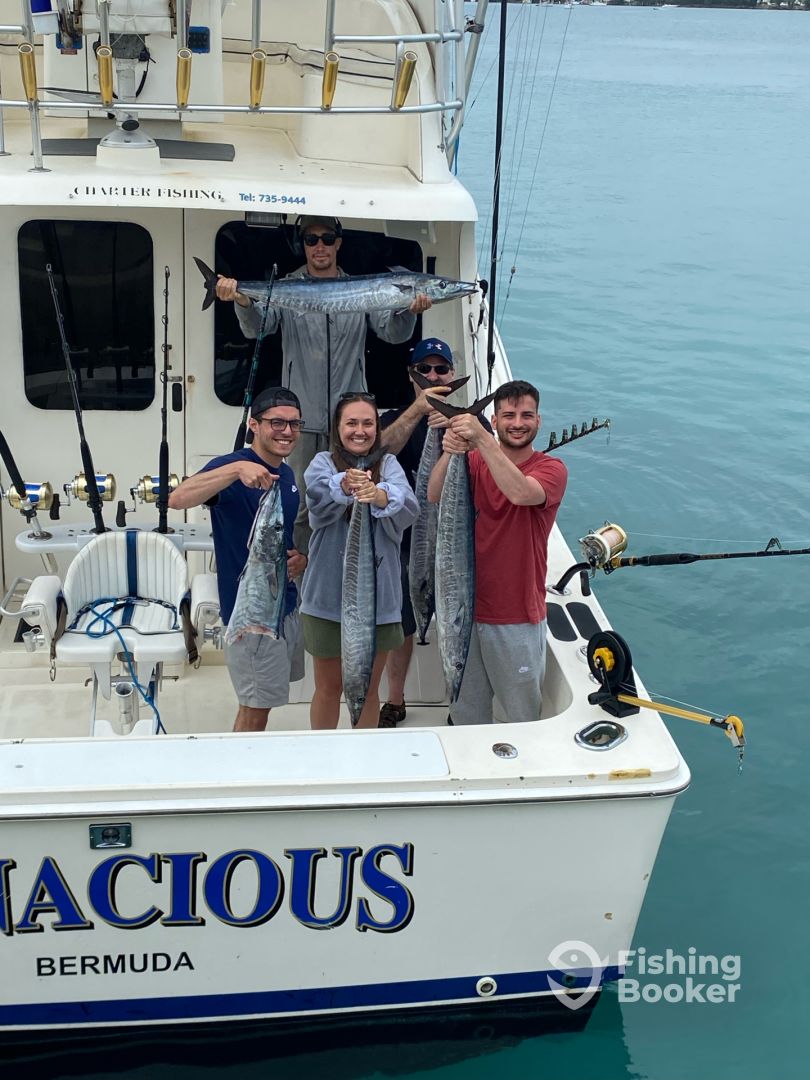 Captain Sloan put us on big fish, Wahu and Black Fin Tuna. He showed us Humpback Whales and gave us a great tour of the southern and eastern coast with commentary of Bermudaโs rich history. Highly recommend the the full day excursion. The Tenacious was perfect for trolling these beautiful waters. Great trip, get out there with with this crew.